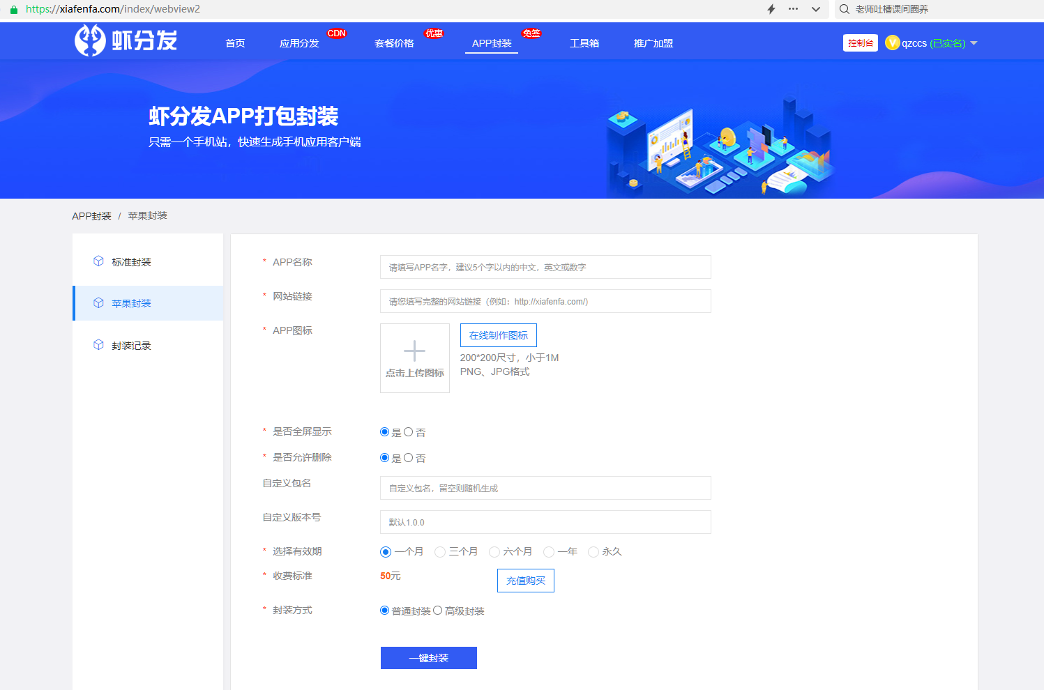 3.虾分发,ios封装 https://xiafenfa.com/index/webview2